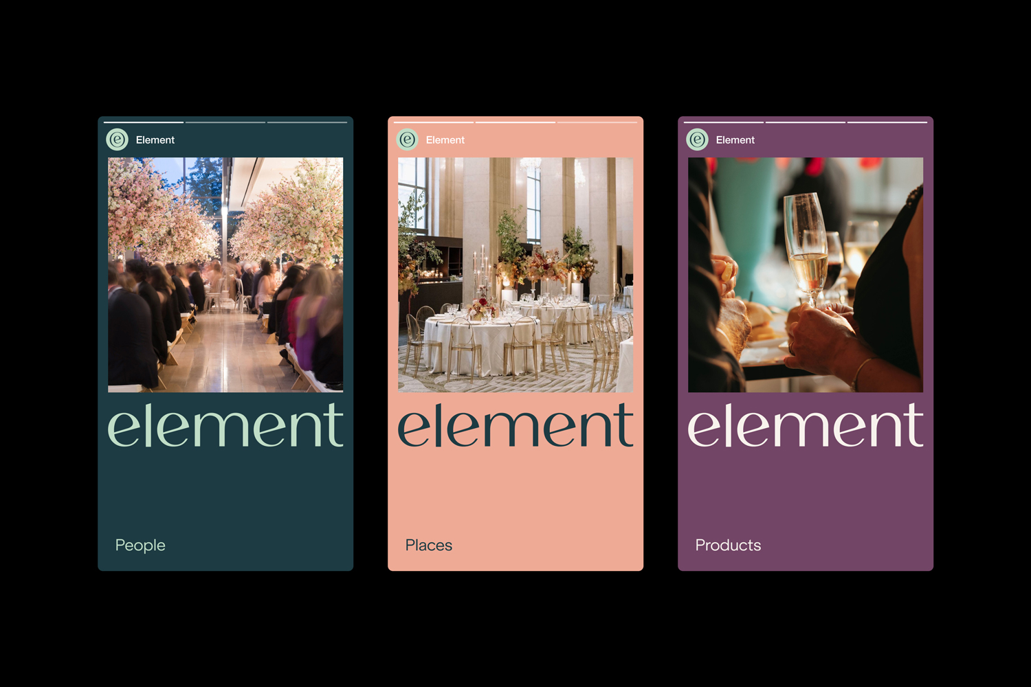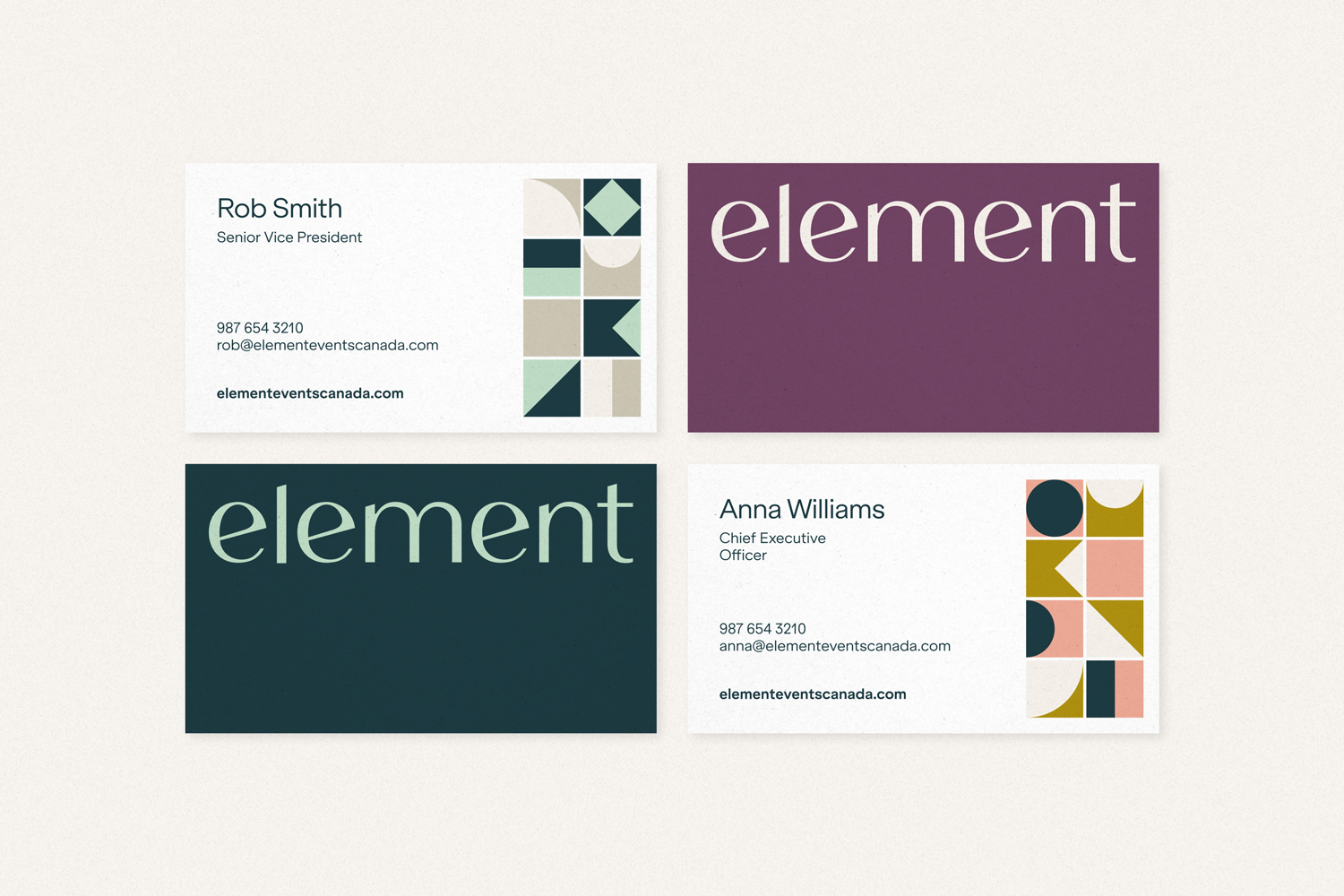 Formerly known as Chair-Man Mills, Canada’s event rental leader for over a century, consolidated nine businesses into one master brand, Element. Built around the essential building blocks of any event: people, places, and products. A premium but practical visual system was created that translates each element into simple core shapes: a circle, square, and triangle.