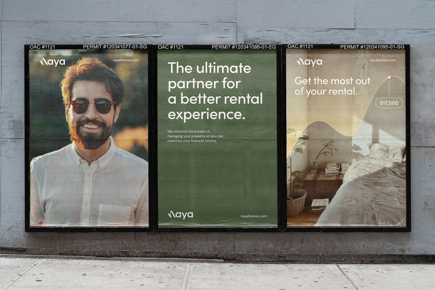 Naya Homes makes second-home ownership feel effortless for homeowners while delivering memorable stays for guests across Mexico and Latin America. The brand pairs warm, Latin-inspired craftsmanship in the logo and colour palette with a modern visual system of data-led graphics, communicating performance, transparency, and stronger returns.