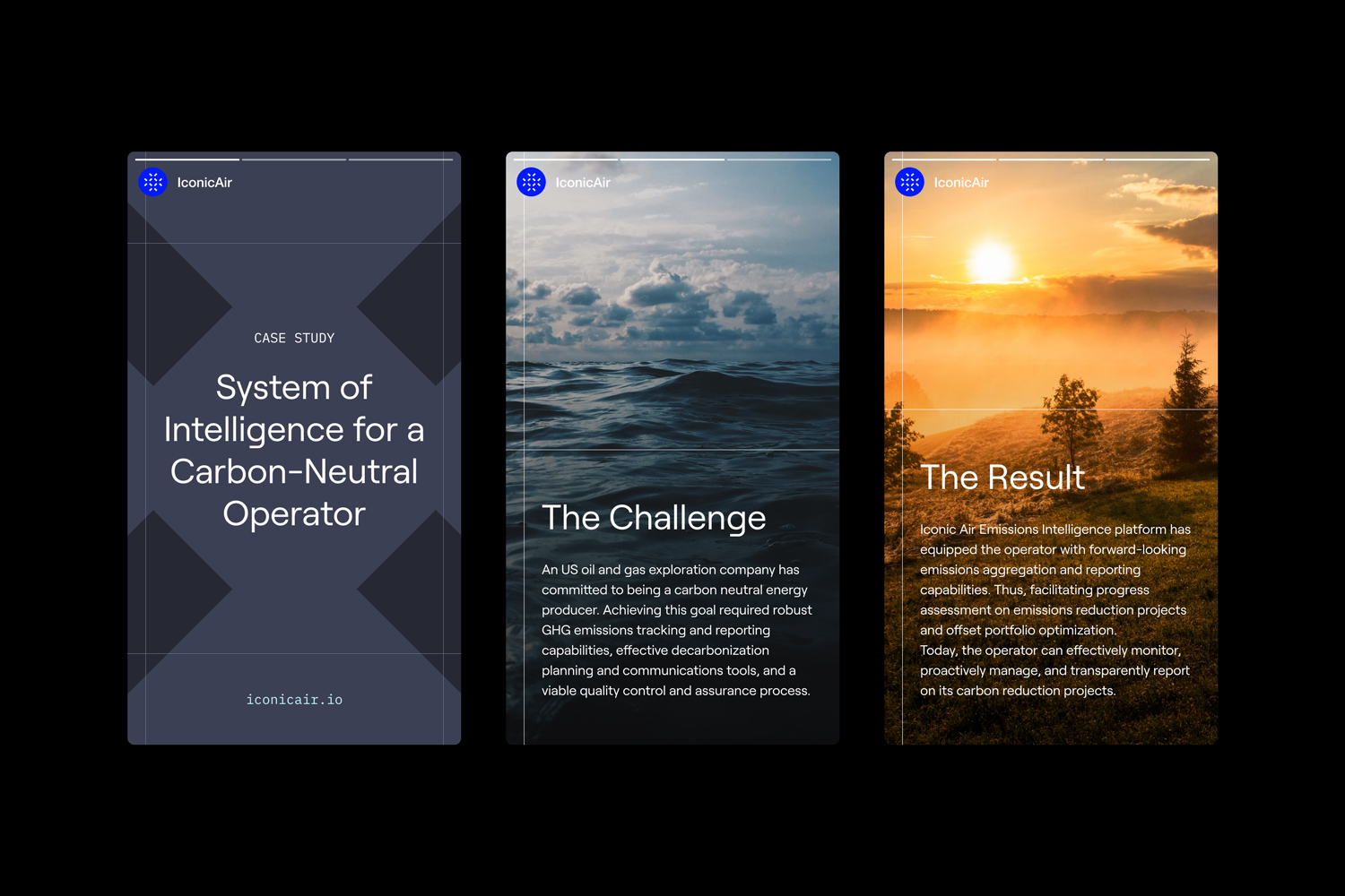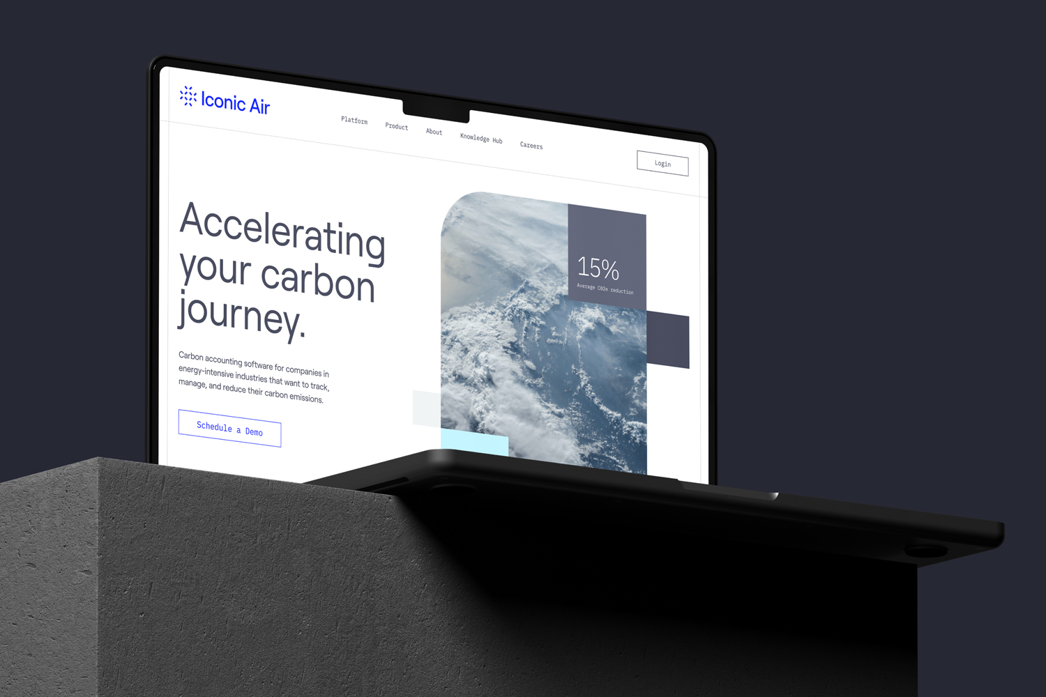Helping the world’s most energy-intensive industries accelerate decarbonization and mitigate climate risk. Iconic Air is catalyzing environmental change where it matters most. This vision is expressed through a logomark that blends molecular science with technology and orchestration, supported by a modular visual system of rules, key data points, and adaptable multi-coloured blocks that reinforce performance, clarity, and each client’s unique journey.